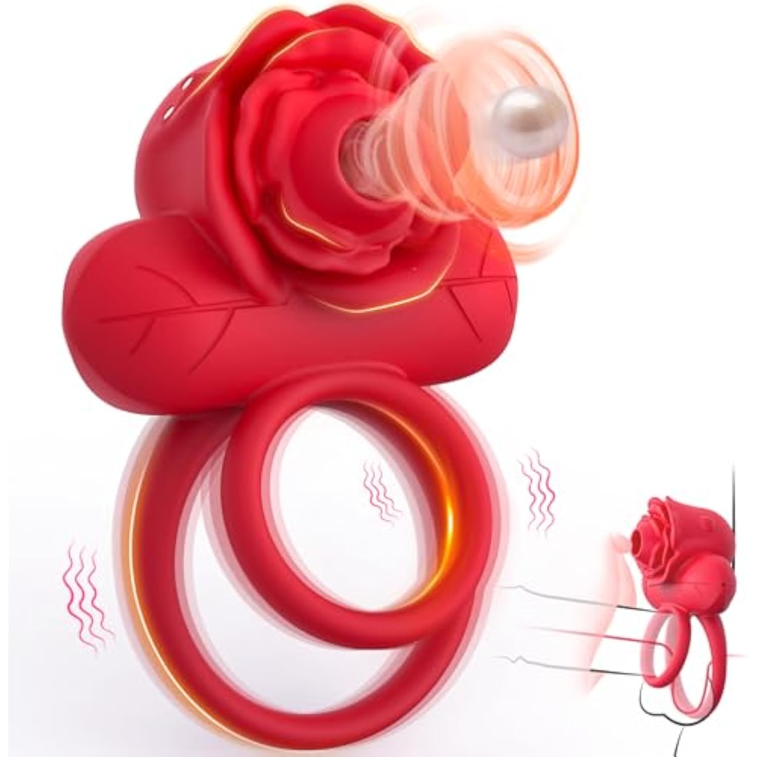 Vibrating Cock Ring Sex Toys For Men, Penis Ring Vibrator Clitoral Stimulator With Sucking Play, 10 Vibrations Rose Adult Couple Sex Toys For Male Female Pleasure