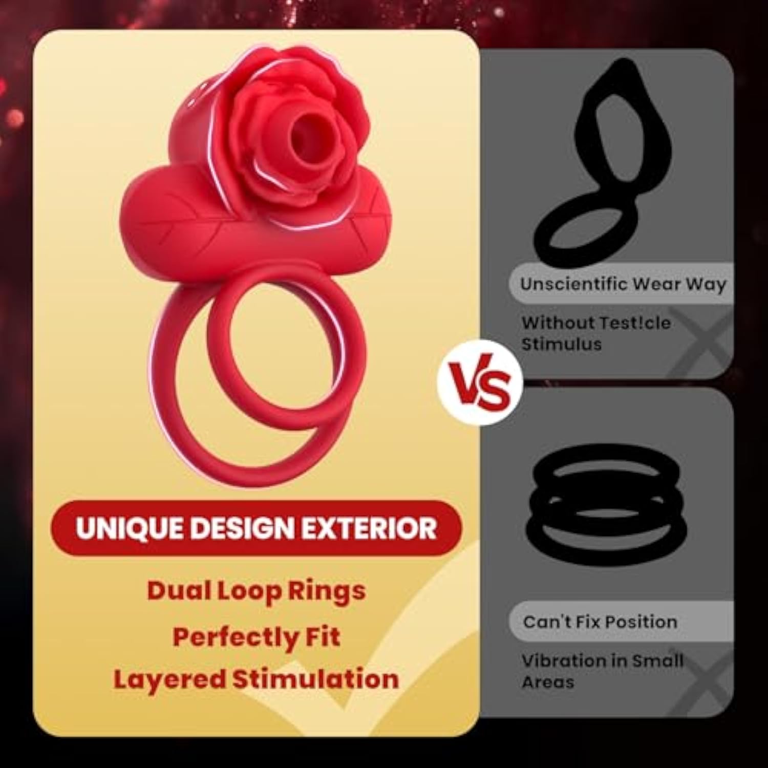 - 10 Intense Vibrations: This Innovative Penis Ring Vibrator Features 10 Modes To Suit Every Preference, Ranging From Weak To Strong, Providing A Wonderful Vibration That Spreads From The Center Of The Rose-Shaped Sucktion Vibrator To The Cock Ring