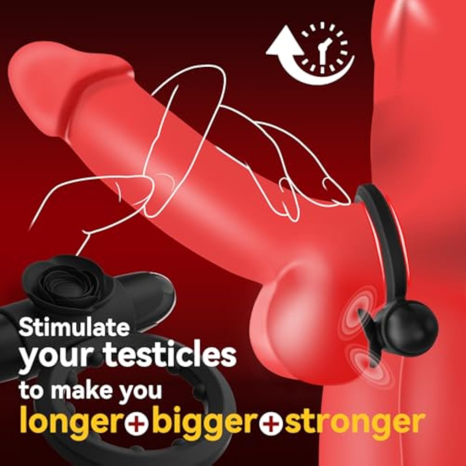 Vibrating Cock Ring With Bullet Vibrator For Men, Adult Sex Toys Penis Ring Vibrator For Penis Testicles Clitoris Stimulation, Rose Clitoral Stimulator For Couples Sex Toy, Black