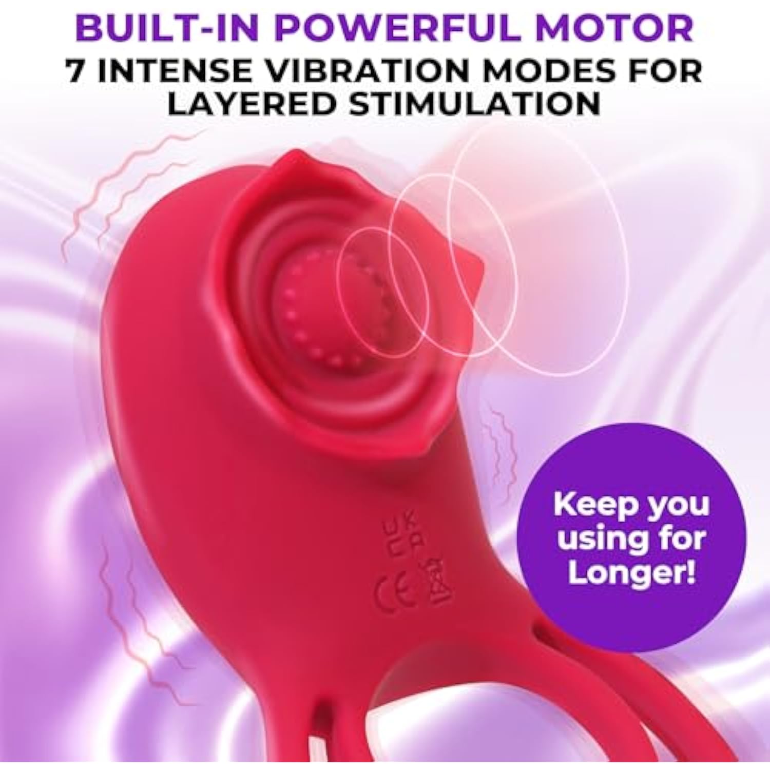 - ?? 2-In-1 Design For Layered Stimulation: This Cock Ring Penis Vibrator Features A Rose-Shaped Stimulator For Precise Clitoral Targeting And A Dual-Ring System To Secure The Shaft And Testicles. Enjoy Deeper, More Intense Sensations For Both Partners During Every Intimate Moment.