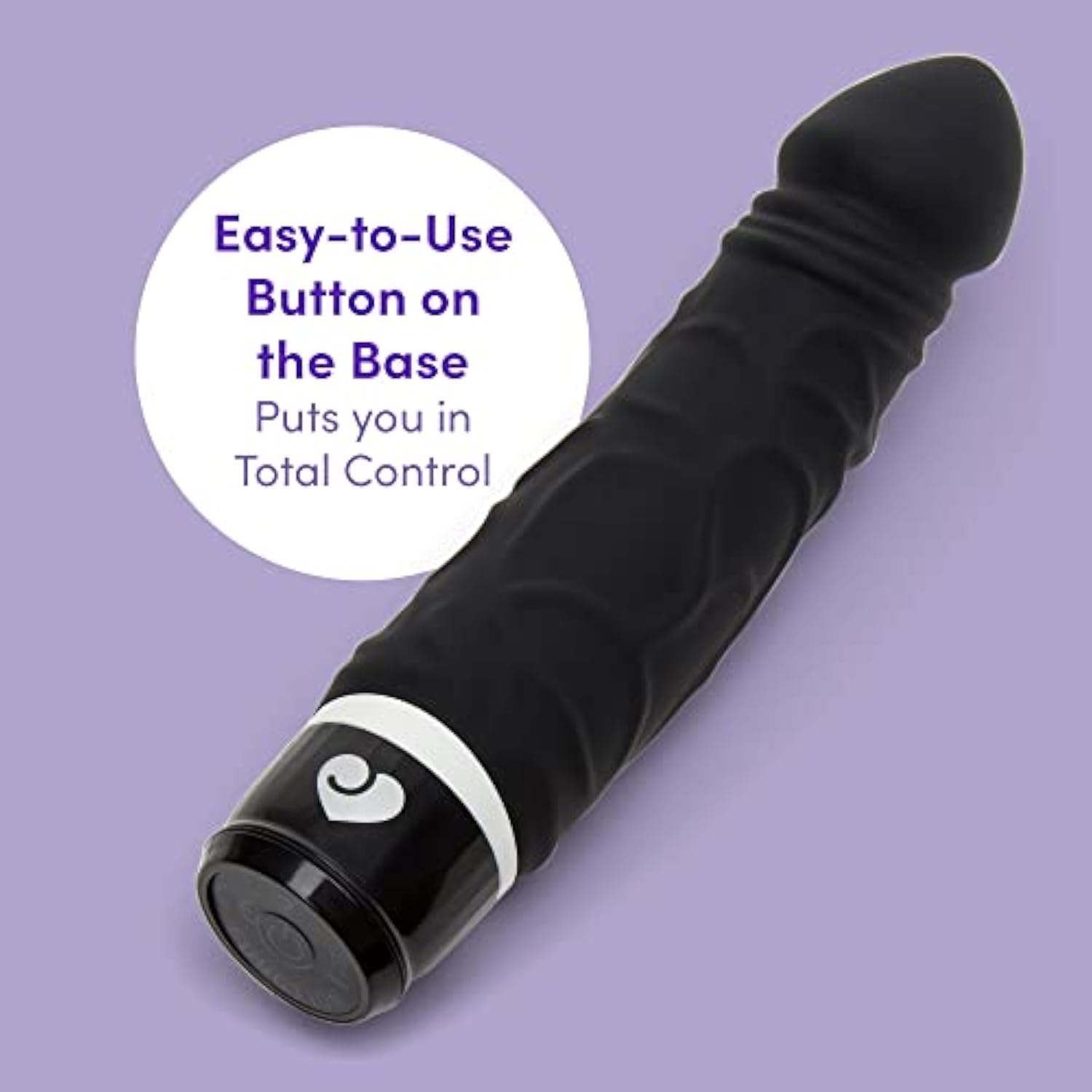 Vibrating Dildo - 8 Inch Realistic Dildo - Girthy Soft Silicone - Easy-To-Use 7 Function Vibrator For Women - G-Spot Adult Sex Toy - Waterproof - Black