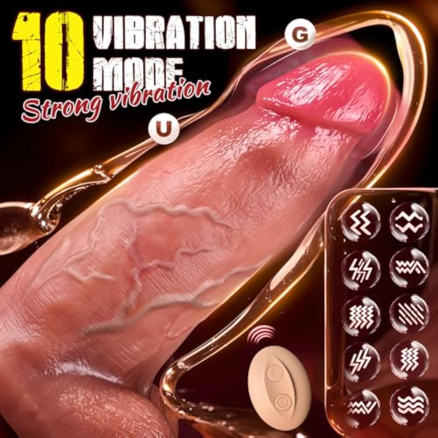 | Wide Application - This Thrusting Dildo Has Realistic Glans, Cyan Veins, Testicles.The Perfect Dildo Can Easily Stimulate Your G-Spot, Clitoris Anus And Will Definitely Allow You To Enjoy The Ultimate Fun | | 10 Vibrating Modes Remote Control - This G-Spot Vibrator Has 10 Vibrating Modes Can Bring You Different Levels Of Stimulation.The Vibrating Dildo Vibradores Comes With An Original Remote Control, You Can Switch Vibration Modes While Remotely Controlling The Huge Dildo. | | Strong Suction Cup - This Movable Thick Dildo Has A Powerful Suction Cup, Which Can Be Used For Hands-Free Play. Whether In The Bedroom, Bathroom Or Others, Whether You Are Alone Or With Your Partner, You Can Liberate Your Hands And Enjoy The Joy Of Sex. | | Perfect Size - With An 9.5” Total Length And A 6.7” Insertable Length, The Dildo Vibrator Features An Ideal Size For Vaginal, G-Spot And Anal Stimulation. Its 2.8” Diameter Ensures Both Comfort And Intense Pleasure. | | Discreet Packaging - This Adult Sex Toy Is Delivered Discreetly To Preserve Your Privacy. With No Sensitive Content Displayed On The Packaging, You Can Rest Assured That Your Confidentiality Is Protected, Avoiding Any Potential Embarrassment. | |