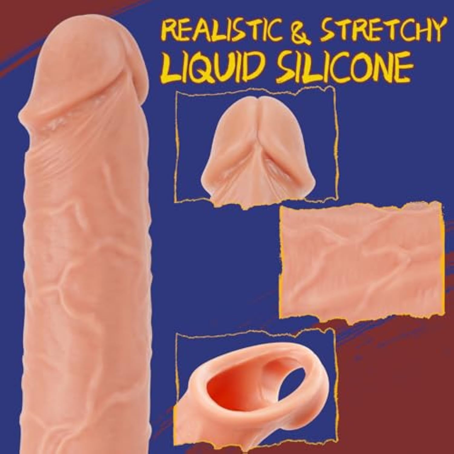 - ?Silicon Penis Sleeve With Realistic Texture?: Our Penis Enlarger Stands Out With Its Lifelike Design And Skin-Like Silicone Texture. The Realistic Appearance, Coupled With The Premium Quality Soft Silicone Material, Creates A Seamless Integration That Enhances Your Comfort And Pleasure. To Ensure An Even More Enjoyable Experience, We Recommend Applying Lubricant Before Use.