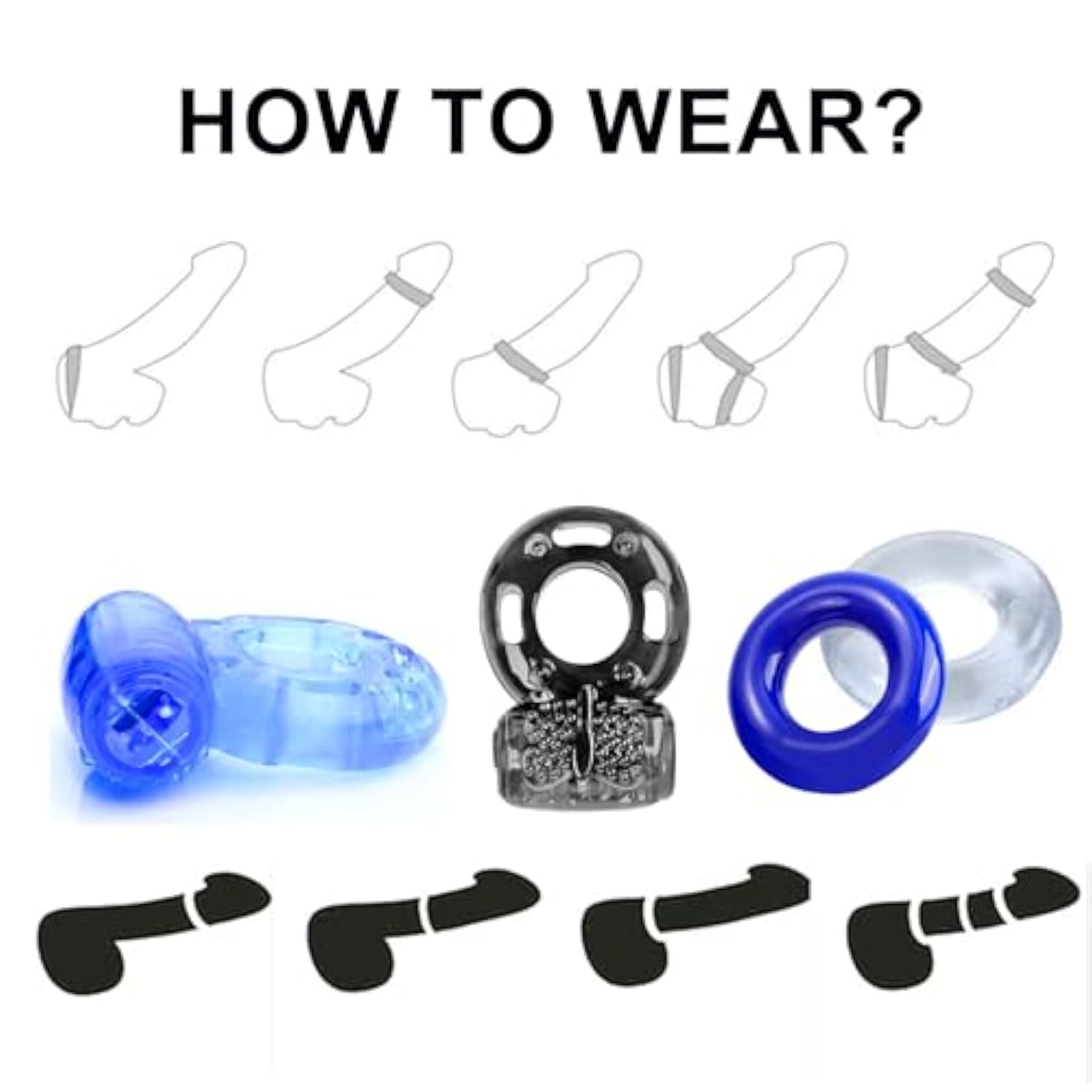 | Perfect Choice For Couples:This Silicone Penis Ring Full Of Possibilities. All The Benefits Of A Penis Ring And A Clitoris Massager In One. | | Soft Materialsuitable Size:The Erection Cock Ring Is Made Out Of A Soft Smooth Liquid Silicone Material And Texture Is Soft On The Surface. Besides, The Enhancing Sex Toy Is A Good Size And Stretches To Fit Comfortably Around Average Size Penis. Easy To Wear And Use! | | Long-Lasting Batteries: Free Batteries Included Last Up To 30 Minutes. The Tiny Switch On The Side Of The Vibrator Can Be Turned On And Off. | | Prolong Sex Time:This Penis Ring Set Stretches Comfortably Around The Base Of The Penis, By Physi