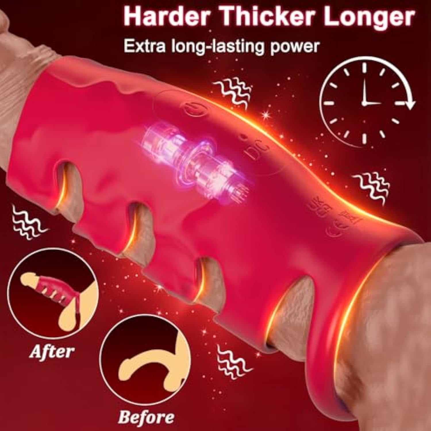 - ?Multi-Ring Hollow Vibrating Penis Sleeve?This Couple Vibrator Has Novel Appearance And Design, It Makes Your Cock Increase 35% Waist Circumference, Not Only Bigger And Thicker, But Also Because Of The Locking, And Thus Congested With Blood, So That Your Penis Is Longer. The Glans Is Exposed And Not Wrapped In The Sleeve, Which Maximizes The Glans To Feel The Real Pleasure Compared To The All-Inclusive Penis Sleeve. Meanwhile, The Hollow Design Enhances Breathability And Ensures Long-Lasting Comfort.