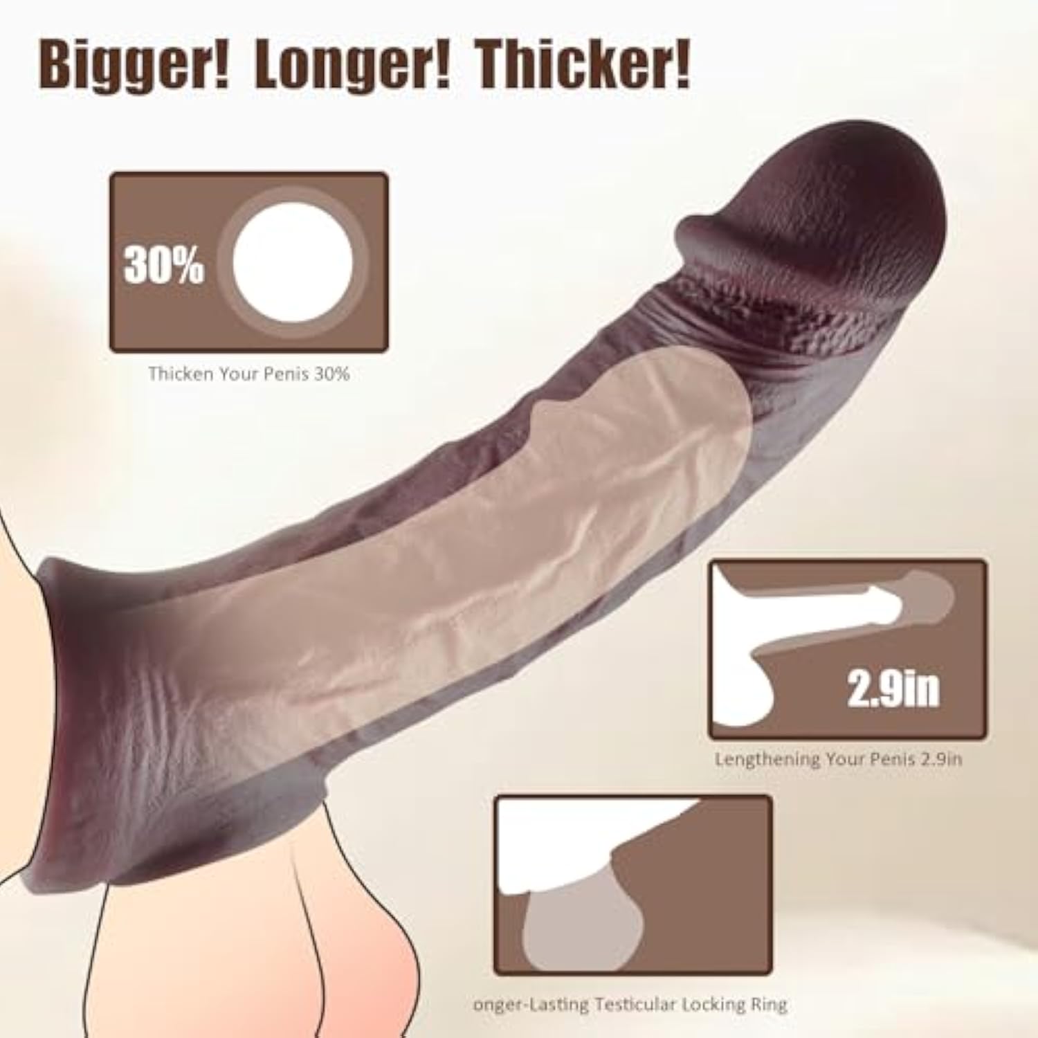 - ?Expand Length And Unique Design?Wearing Our Penis Sleeve Will Make You More Confident. It Will Help You To Add About 2.95 Inches And More Girths. Our Penis Sleeve Comes With A Ring With Sperm Locking Feature Underneath. It Has Our Exclusive Design Texture Around It. It Will Wrap Around Your Penis, It Can Be Used As A Condom Or As A Penis Extender.