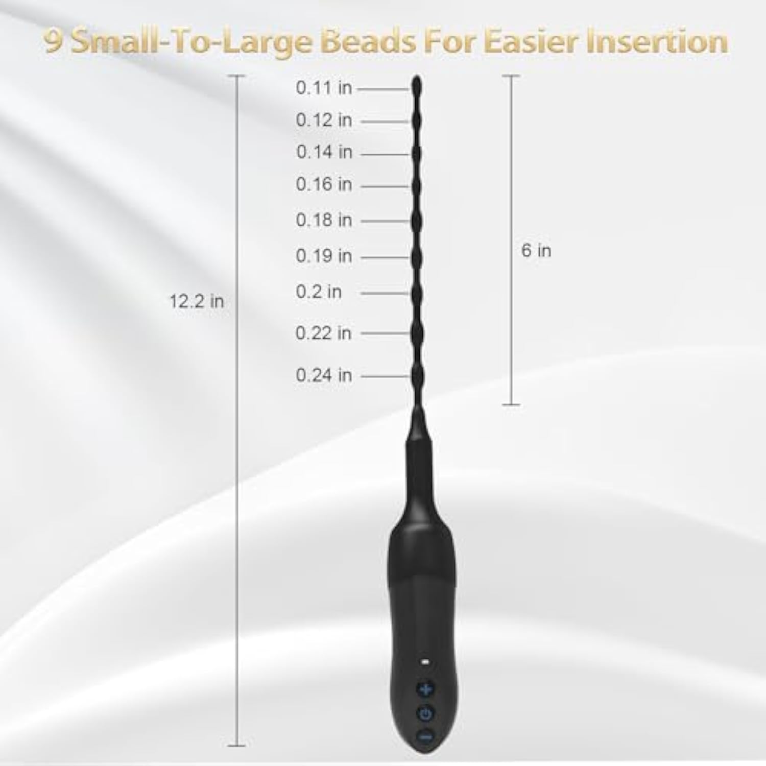 | 20 Vibration Modes:Our Male Vibrating Urethral Sound Dilator Vibrator Sex Toy Brings You 20 Different Vibration Modes, Giving You The Freedom To Choose From Weak To Strong Vibration Modes, Providing Unrivalled Stimulation Of The Male Urethra | | Glans Urethral Dilation Training:Our Silicone Urethral Stretcher Probe Wand Has 9 Different Sized Beads To Enhance Your Glans Training And Expand Your Urethral Capacity, Perfect For Those Looking To Increase Their Pleasure Potential | | Safe And Premium Quality Silicone: This Penis Plug Is Made Of Safe And Soft High Quality Silicone, Which Is Easy To Clean. However, Please Remember To Apply Plenty Of Lubricant Before Use For Better Enjoyment | | Usb Magnetic Charging:The Urethral Sound Vibrator Is Usb Magnetic Charging, 1.5 Hours Of Charging Can Be Used For 1 Hour Of Continuous Use, And The Strong Motor Power Ensures That Your Stimulation Will Not Be Interrupted | | Ipx6 Rated Waterproof: This Penis Vibrator Is Ipx6 Rated Waterproof, So You Can Play With It Anytime, Anywhere, Whether You'Re In The Bathtub Or In The Shower, You Can Have Fun | | Discreet Packaging:The Process Of This Mens Sex Toy Is Confidential, There Will Not Be Any Adult Sex Toy Information On The Package, So No One Will Know What'S In The Box, And No One Will Know Your Little Secret | | Reliable After-Sales Service:If You Have Any Questions About This Male Penis Masturbation Massage Trainer, Please Feel Free To