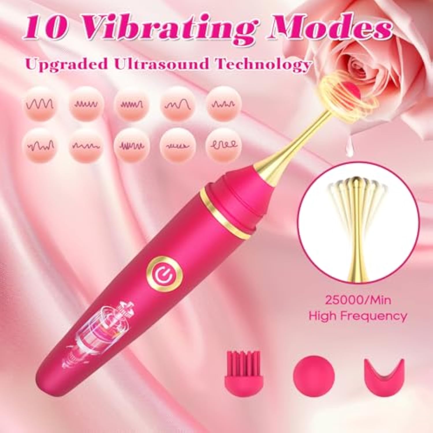 Vibrator Wand Female Adult Sex Toys For Women, 4 In 1 Squirting Vibrator With 10 Modes Pinpoint Clitoral G-Spot Dildo Nipple Stimulator High Frequency Mini Bullet Vibrators 3 Silicone Head