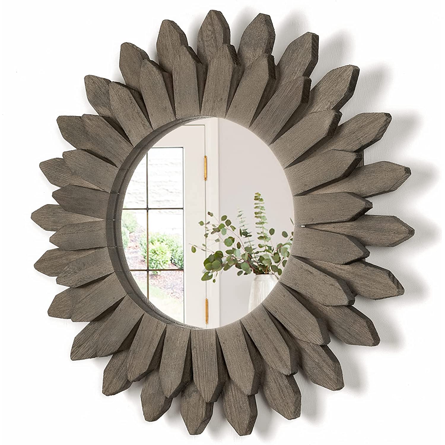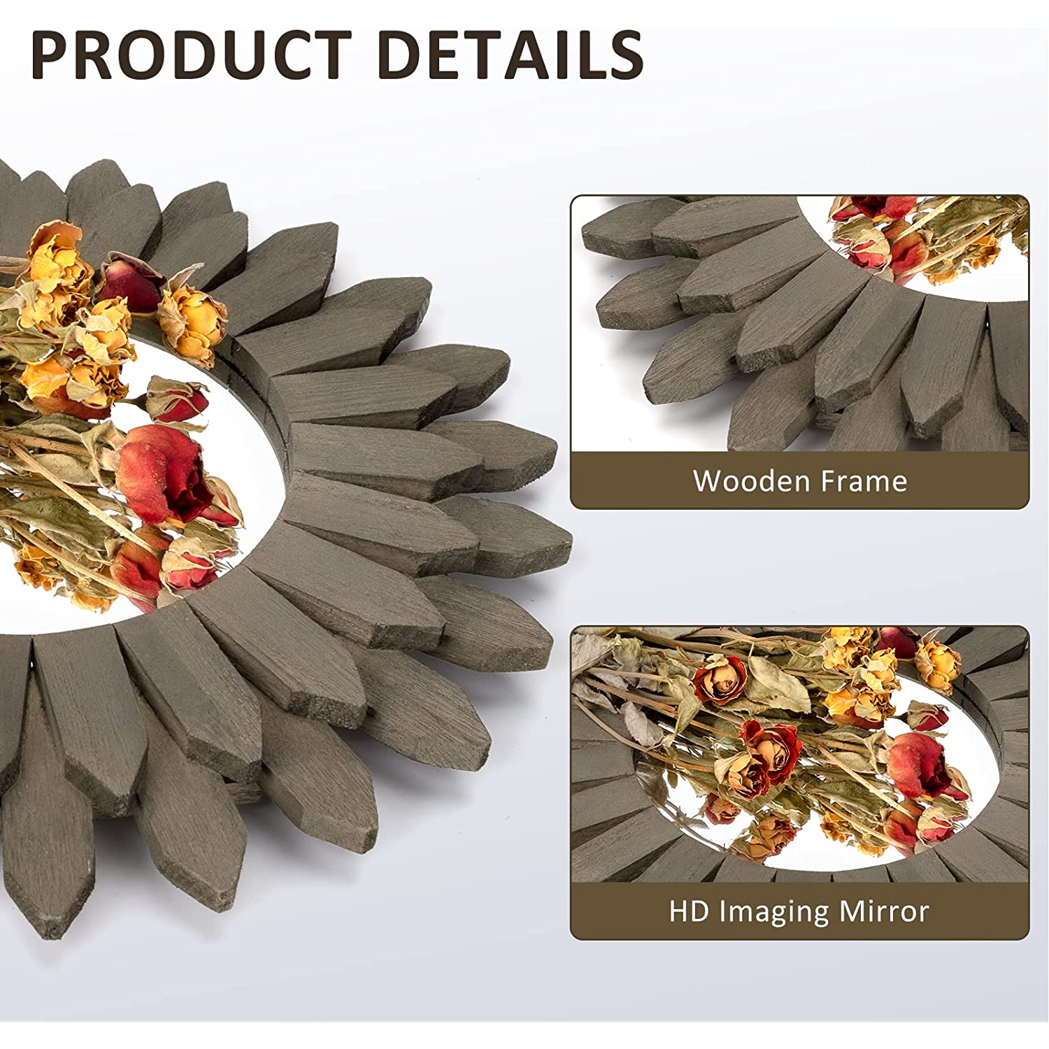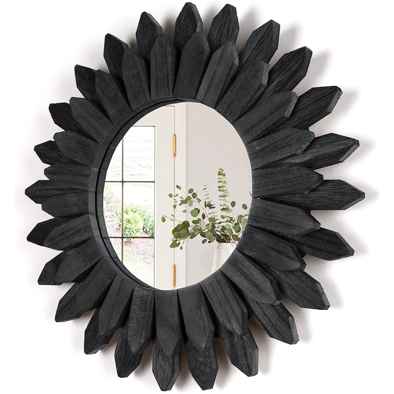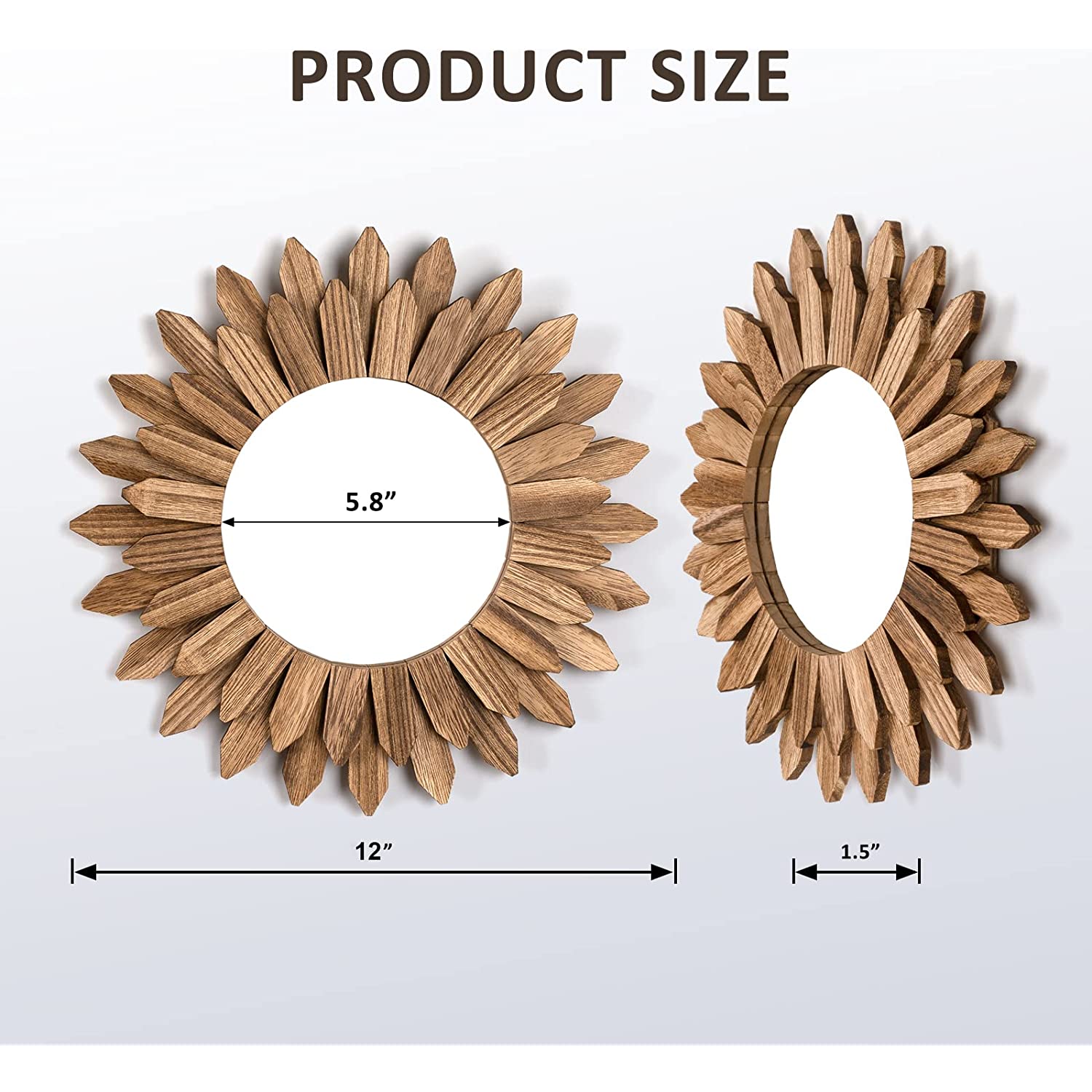 - Boho Wall Decor Mirror—The design of wood sunburst base on the element of boho style, it will be a nice touch and goes well with your others boho decor style; decent decorative piece with perfect size for wall mounted or lean on wall at desk, perfect for your bedroom, living room, bathroom, kitchen and more