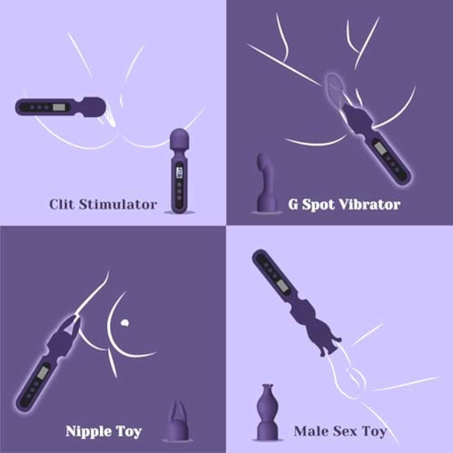 | Outstanding Interchangeable Av Wand Vibrator Set: With More Creativity Than The Classic Av Massage Vibrator, You Can Customize It To Apply The Perfect Amount Of Pressure To Your Own Or Your Partner'S Clitoris, Nipples, Anal, Penis, Testicles, Abdomen And More. Place One Of The Three Attachments (A Flexible Rabbit Attachment, A Dildo Attachment, And A Glans Massage Attachment) On Top, And You'Ll Be Able To Harness The Power Of This Feminine Erotic Device To Find A Specialized Sweet Spot | | 3 Attachments Customized For Your Entire Body: This Modern Wand Vibrator Comes With An Innovative On-Screen Display That Allows You To See The Intensity Of The Vibrations, The Vibration Mode, The Battery Level And The Time Of Use (With This You Can Know The Time Of The Most Extreme Orgasm That Belongs To You). You'Ll Never Forget To Recharge Your Vibrator After Use! No More Worrying About Not Being Able To Remember The Vibration Speeds And Patterns That Make Your Whole Body Shake And Linger With This Elaborate Lcd Display Design | | 4 Speeds And 10 Vibration Patterns To Explore During Solo And Couples Sex And Foreplay: With The Included Rabbit Head, Wide Textured Glans Massage Sleeve, The Silky Smooth Shaft Can Be Used In Combination With 10 Vibration Modes And 4 Different Vibration Intensities For A Variety Of Orgasmic Experiences. Use This Classic Yet Innovative Soft Silicone Vibrator For Concentrated, Toe-Tapping Pleasure On Your/Their Clitoris, Nipples Or Glans And Millions Of Externally Sensitive Points. With The Elegant Purple Sex Toy, The Speed And Intensity Of The Vibrations Are Controlled Independently Of Each Other, So You Can Decide Whether This Orgasm-Themed Musical Party Will Be Wild Or Peaceful | | Premium Silicone Material Is More Flexible: The Head Of Any Well-Made Wand Will Bend And Flex, And This Adult Sex Toys Is More Flexible And Bendable Than You Might Expect From Any Other Wand Because It'S Made Of A Softer, Premium Silicone. The Round Massage Head Is Made Of Hygienic, Skin-Friendly Silicone That Glides Easily Over Your Body, Targeting Each Area Of Tension And Can Be Easily Cleaned With A Damp Cloth And Some Sexual Health Equipment Cleaner. Each Attachment Is Made Of Premium Soft Silicone That Gently Yet Precisely Strokes Your Entire Body From The Inside Out | | Ipx6 Waterproof Rechargeable Setting: This Remarkable Device Is Waterproof (Ipx6), Meaning It Shines Even When Submerged In Water. So, Why Not Enhance The Soothing Effect Of Your Massage With A Relaxing Full Bath Or A Steamy Hot Shower And When Your Session Comes To An End, Cleaning Is A Breeze. Simply Rinse Your Massager With Warm Water And Mild Soap, And It Will Be As Good As New. With The Included Usb Charging Cable, You Can Easily Recharge Your Vibrator, Ensuring It'S Always Ready For Your Next Sensual Adventure | | Quiet Discrete Privacy Protection After-Sales Service: This Womens Sex Toys Less Than 60Db Sound Will Not Disturb Your Solo Or Sweet Duo Trip. We Put Your Privacy First, So All Product Packaging Is Strictly Packed And No One Will Know What Exactly Is In The Delivery Box. If You Receive The Product And It Has Quality, Appearance, And Function-Related Problems, Please