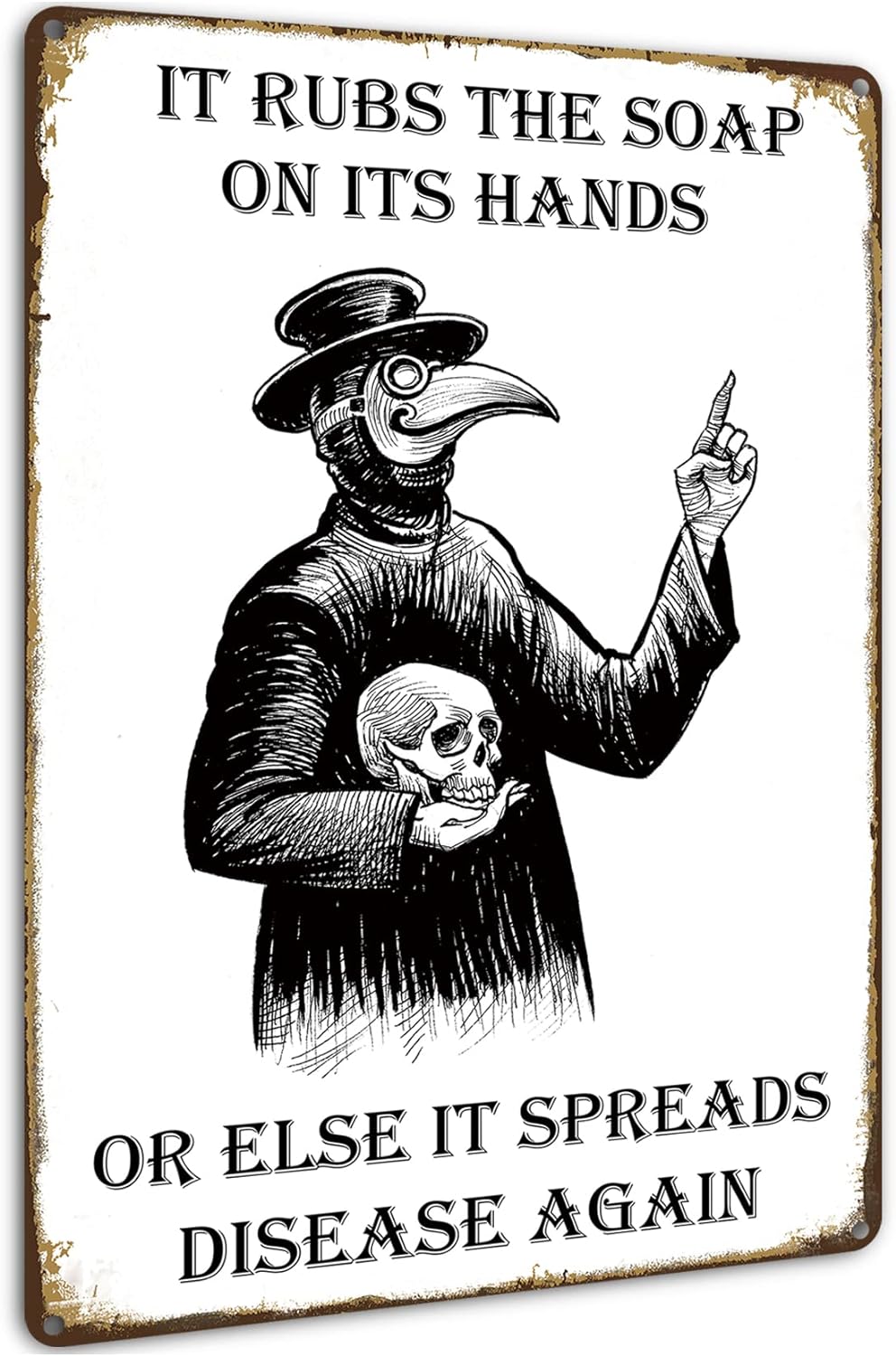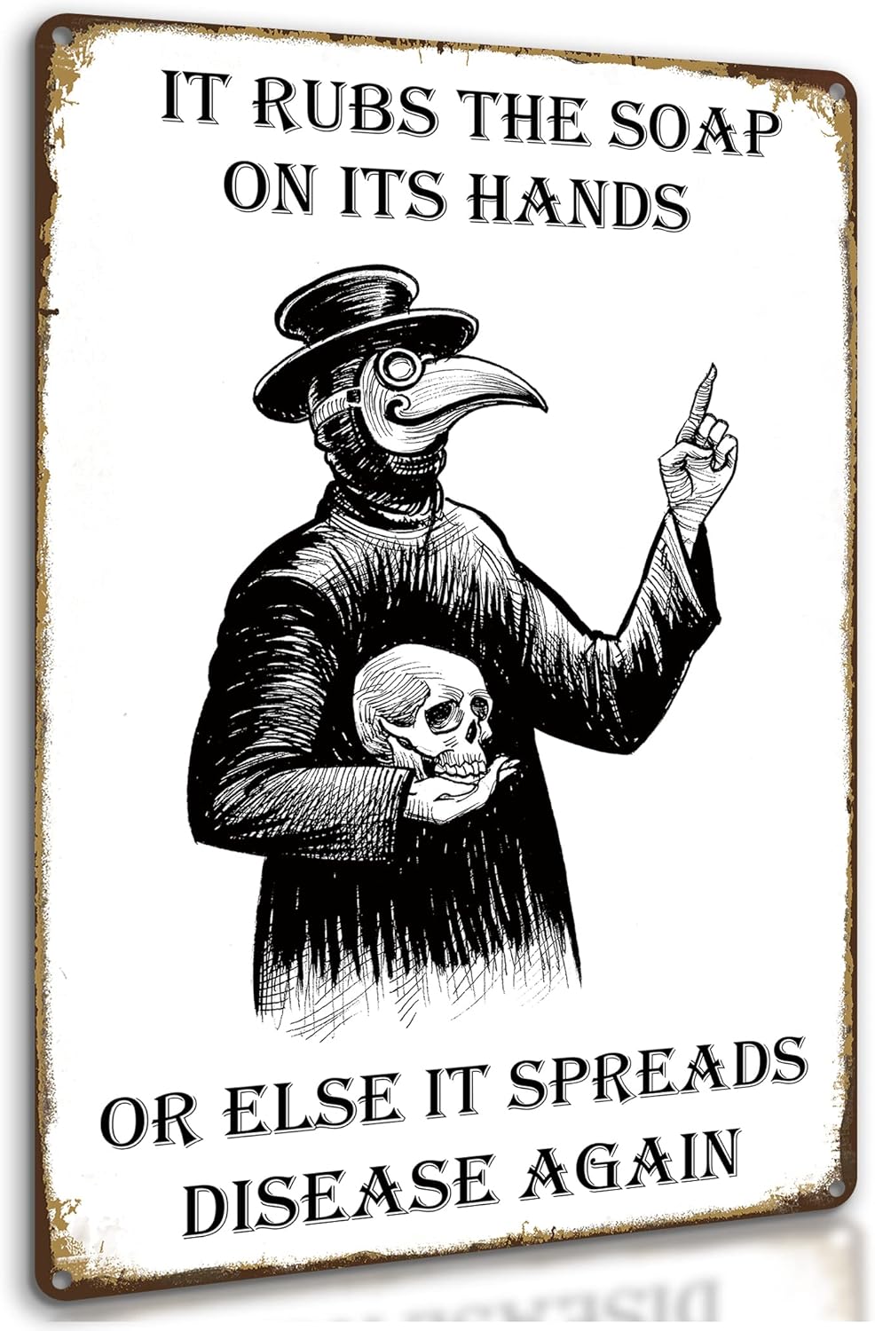 Wash Your Hand Plague Doctor Gothic Decor Wall Decor Guest Wall Decor Art Tin Sign In The Bathroom Bedroom 8 X 12 Inch