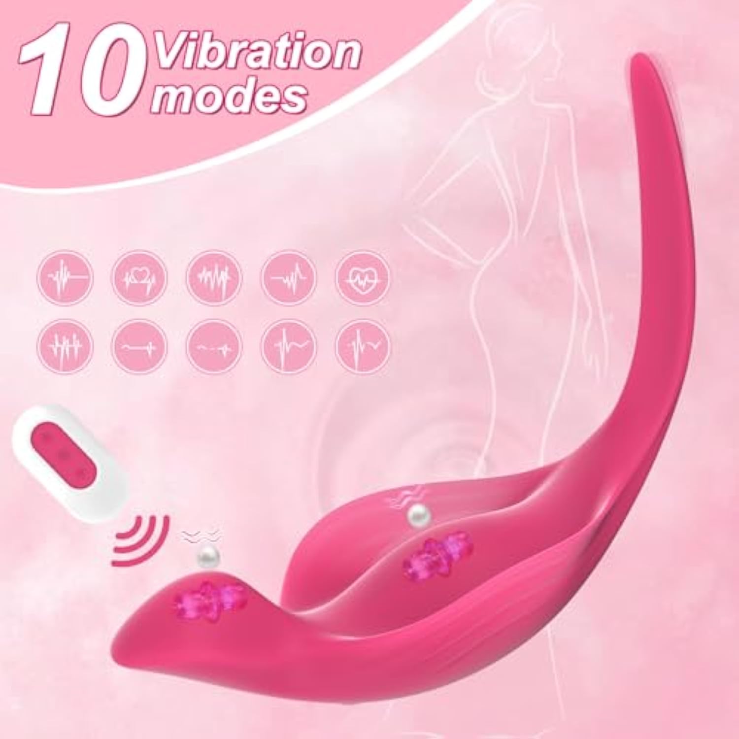 Wearable Panty Vibrator For Women - Adult Toy With Remote Control Of 10 Vibration Modes And Charging Base For Female Couples Rose Red