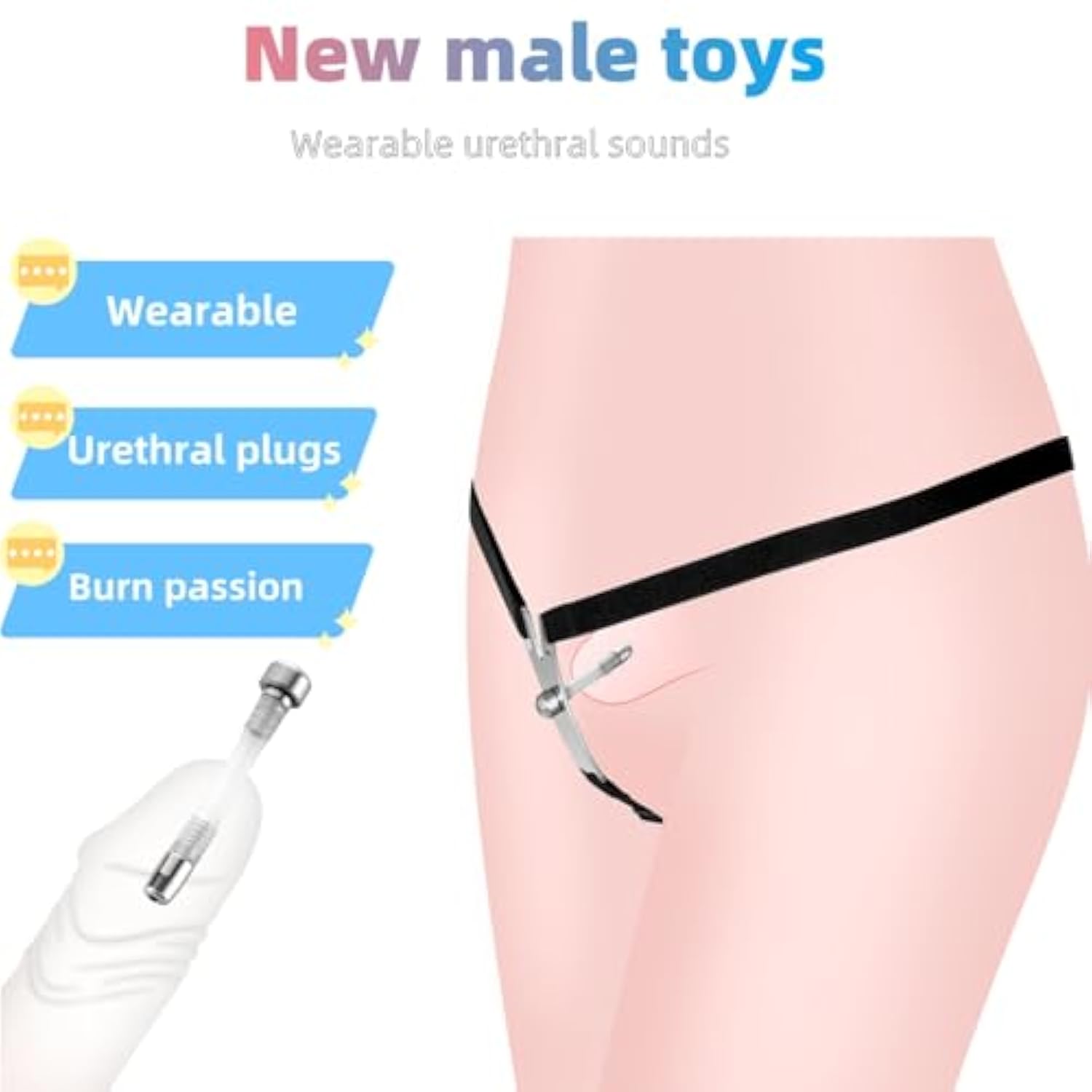 Wearable Urethral Sounds?Urethral Sounding Rod For Man Penis Plugs With Adjustable Waist Belt Adult Sex Toys Male Urethral Dilator Inserts Masturbation Rod Bladder Stimulation For Men