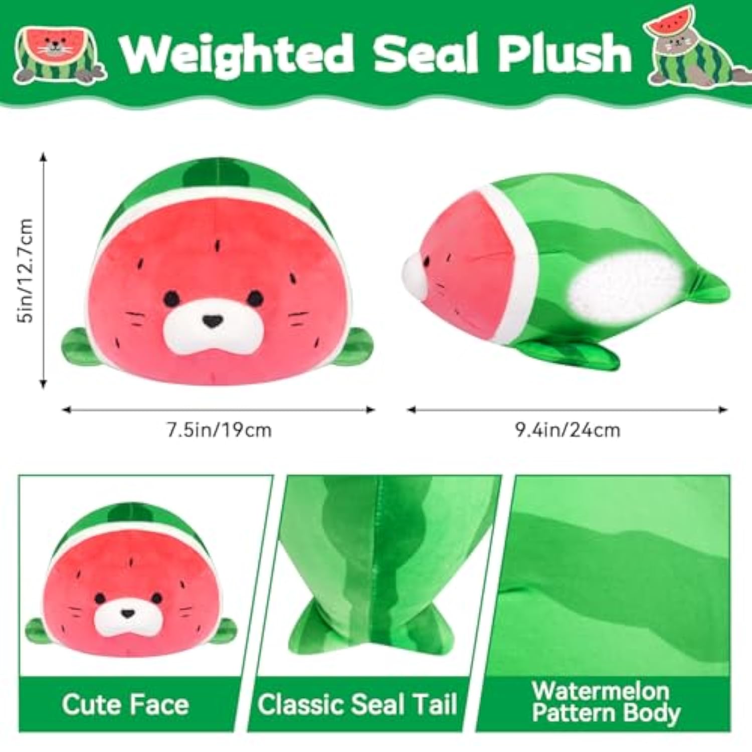 Weighted Stuffed Animals - 9 Inch Weighted Watermelon Seal Plush,Cute Seal Stuffed Animal Small Plush Pillow,Soft Kawaii Weighteds Plushie Watermelon Seals Toy Gifts For Kids Boys Girls