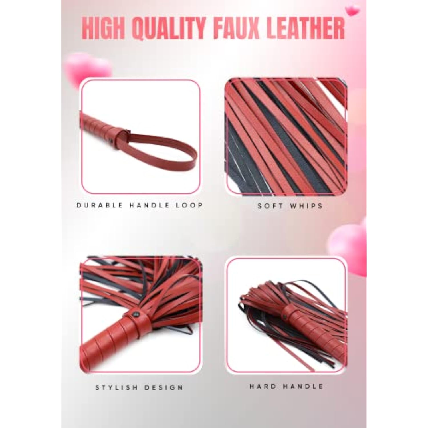 Whip For Adults Play Dominatrix Training Red Faux Leather Flogger 20"