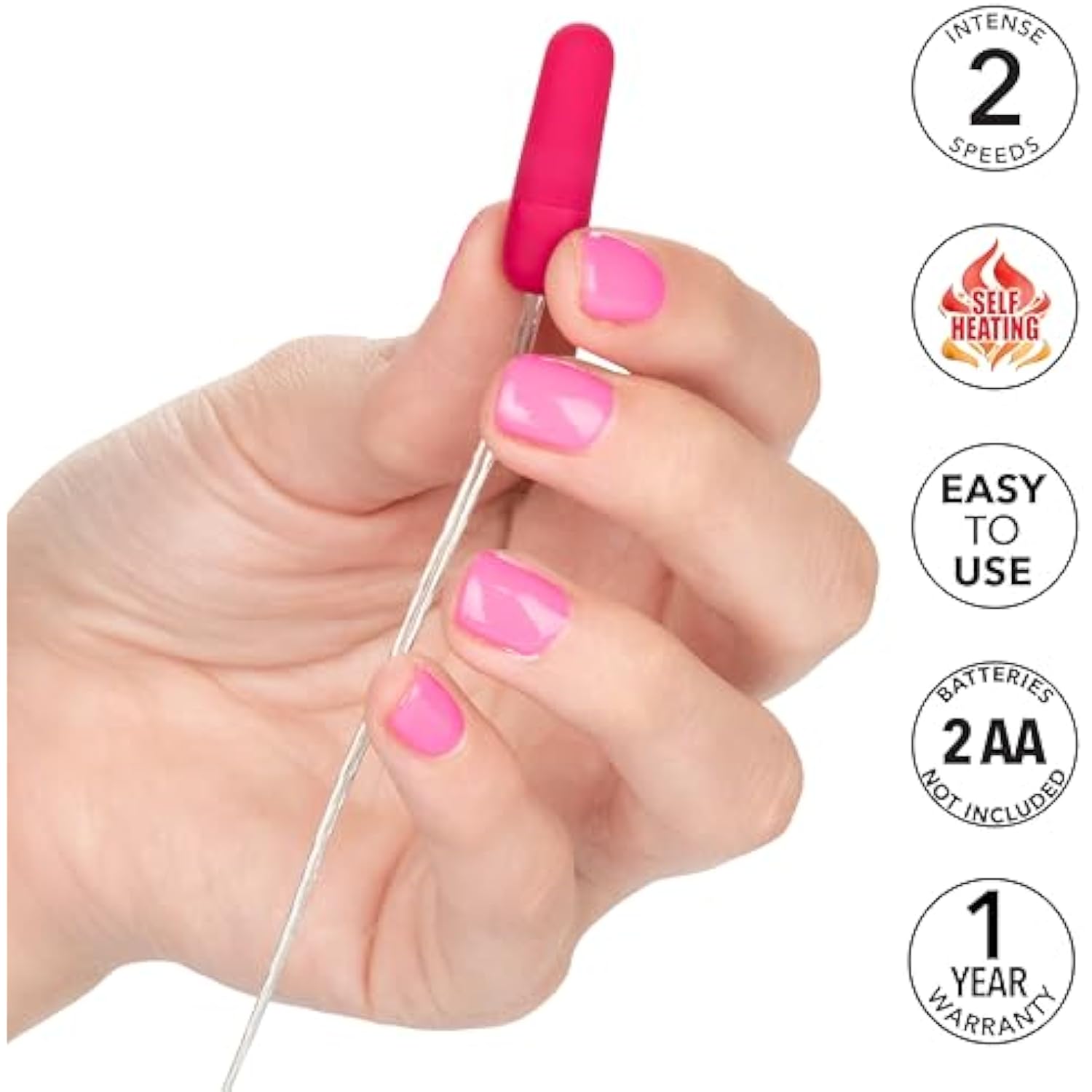 Whisper Micro Bullet – Self Heating Wired Pocket Bullet Vibrator - Remote Control Sex Toys For Couples - Adult Egg Massager - 1.25 Inch - Pink