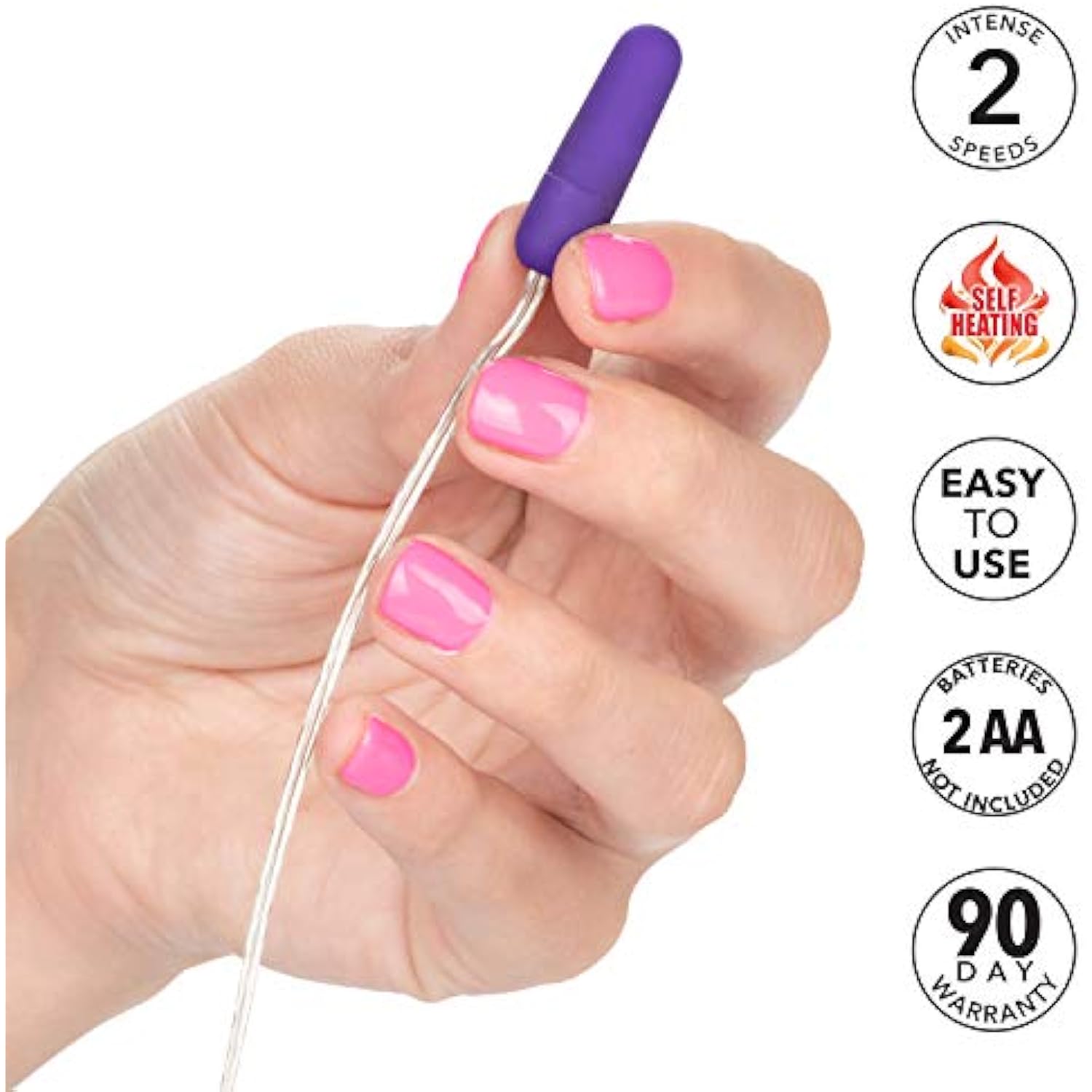 Whisper Micro Bullet – Self Heating Wired Pocket Bullet Vibrator - Remote Control Sex Toys For Couples - Adult Egg Massager - 1.25 Inch - Purple