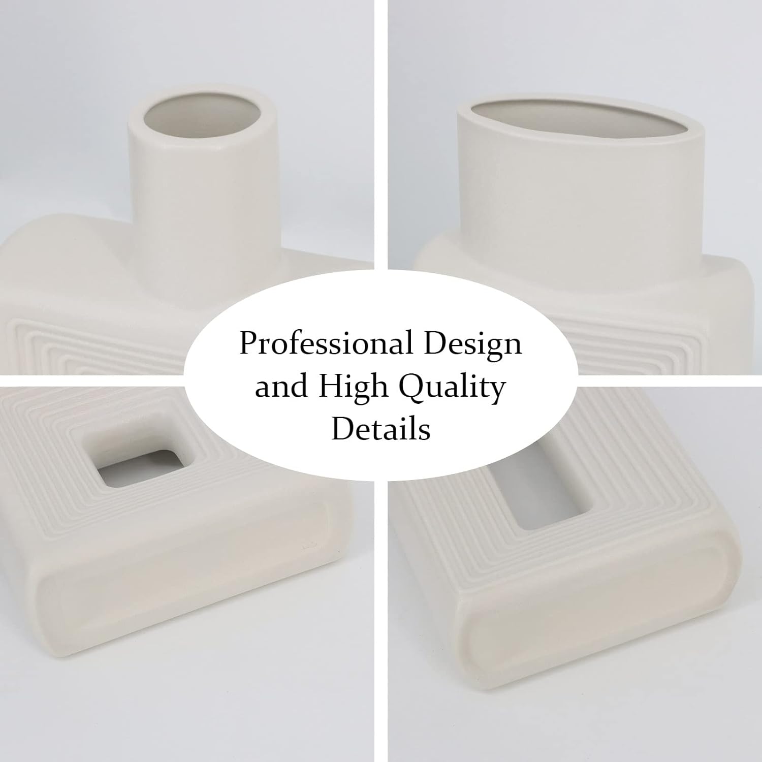 White Ceramic Vase Set of 2,Square Vase Rustic Home Decor Minimalist Nordic Boho Style for Living Room, Shelf, Table, Bookshelf, Mantel and Entryway Decor Vases