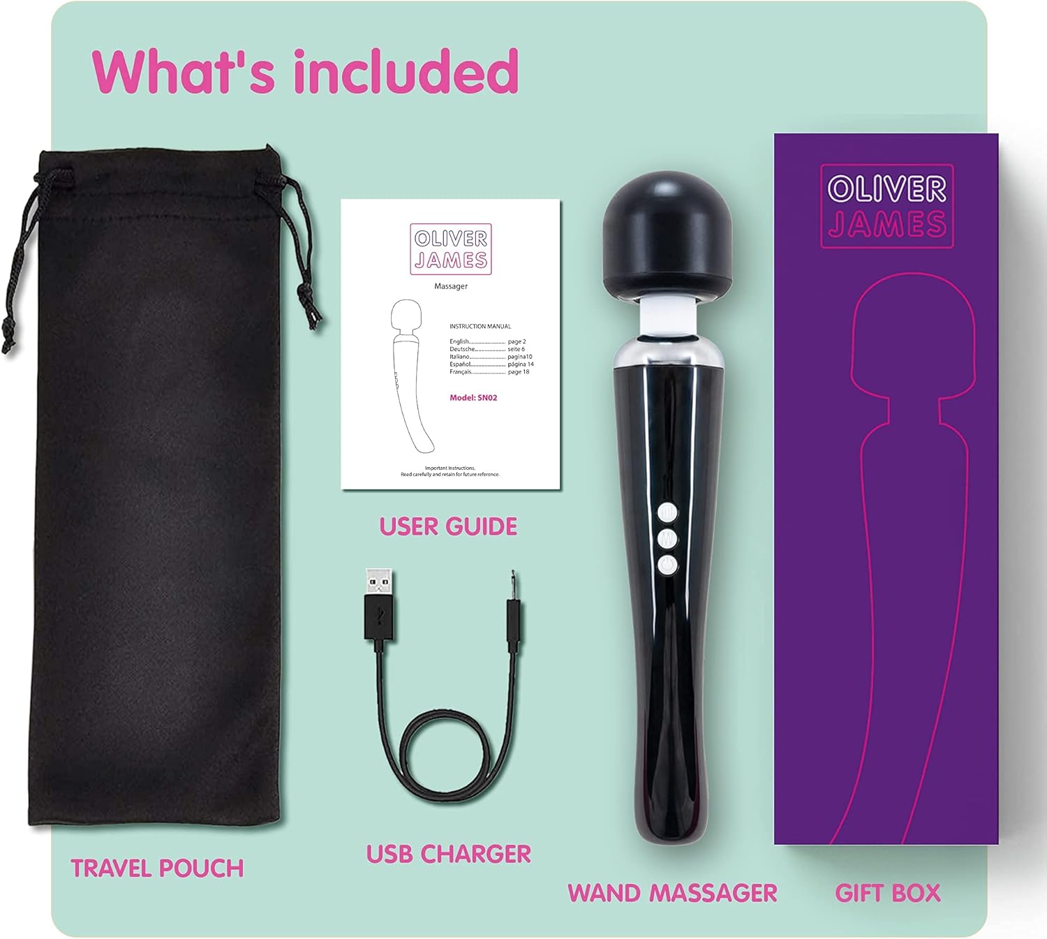 Wireless Wand Massager - G Spot & Clitoral Vibrator with 20 Modes, Waterproof, Black