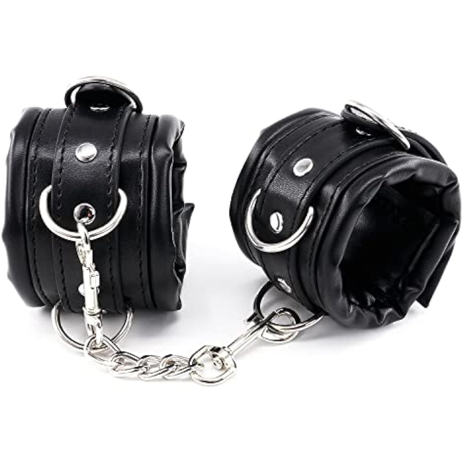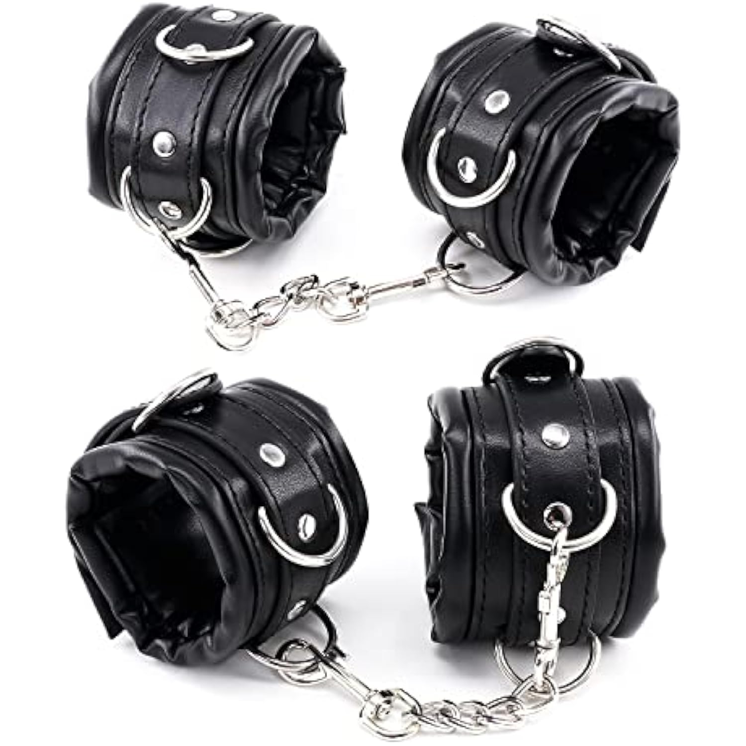 Women And Men Padded Black Leather Bondage Handcuffs And Ankle Cuffs Set, Bondage Restraints Toys Sex Wrist Cuffs And Ankle Cuffs For Sm Games, Bondage Kit Sm Cuffs For Sex Games (Color-1)
