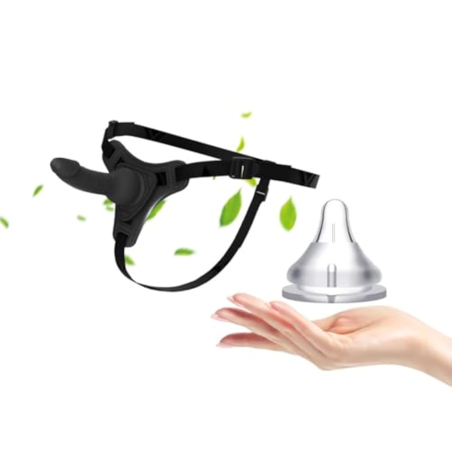 Women Wearable Straps Set For Double Strap-Ons Realistic Classic Soft Silicone Dildo Toy For Couples Adjustable Waist Pants Strapless For All Women Couple(Black)