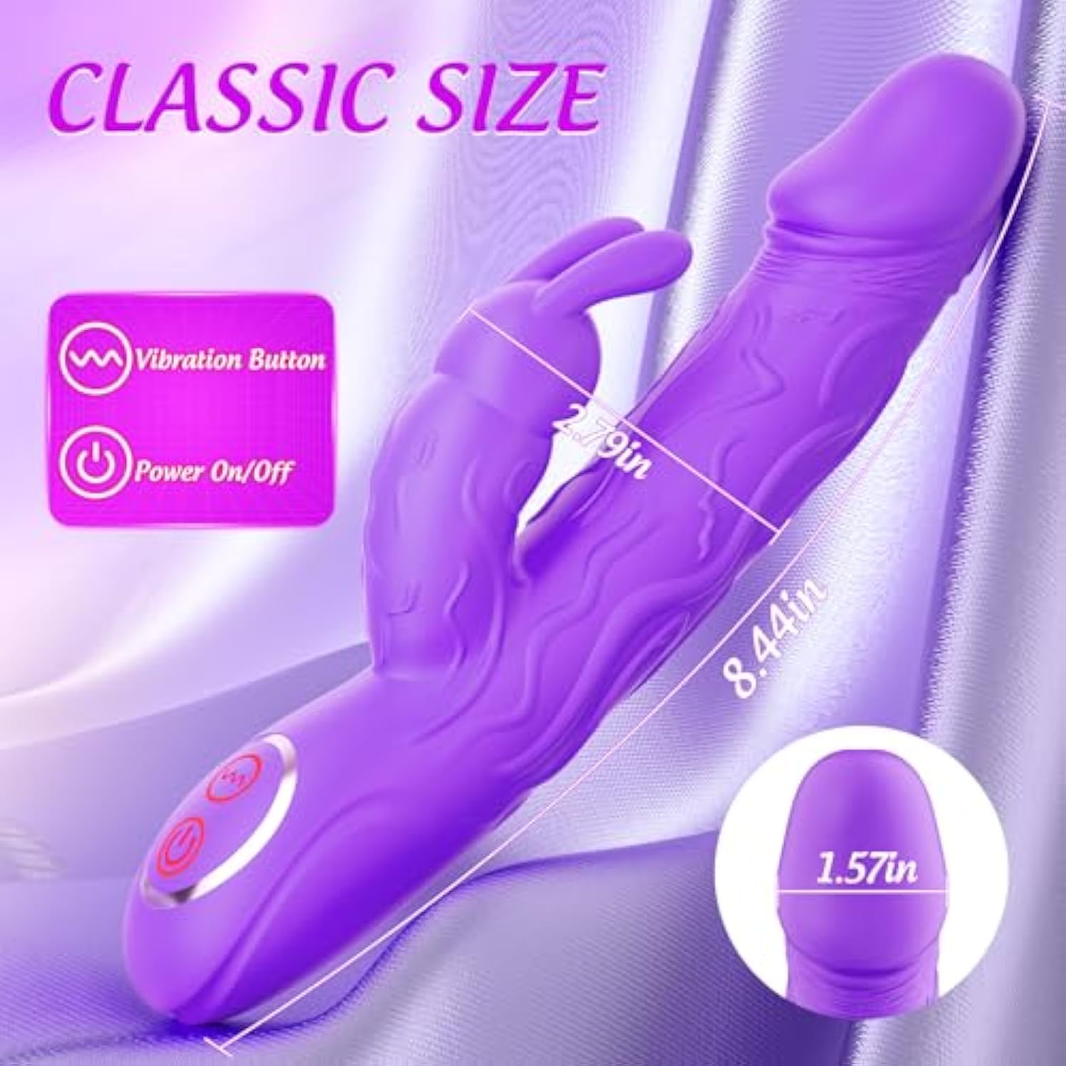 Womens Sex Toys Vibrator, Realistic Textured G Spot Anal Vibrators Rabbit Dildo, Violet Female Vibradores With Dual Motors And Vibrating Ears, Soft Silicone Whisper Quiet Couple Sex Toy