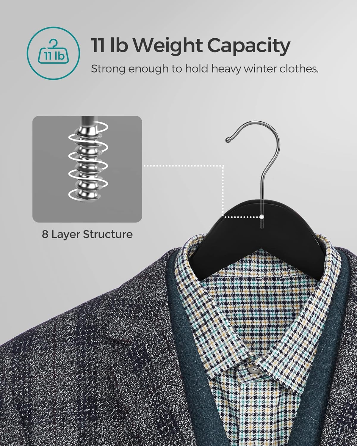 - [No Flimsy Pieces] Each suit hanger made with maple wood is ready to hold up to 11 lb, so whether it’s for heavy winter jackets or thick coats, go ahead and throw them on, these hangers can handle them!