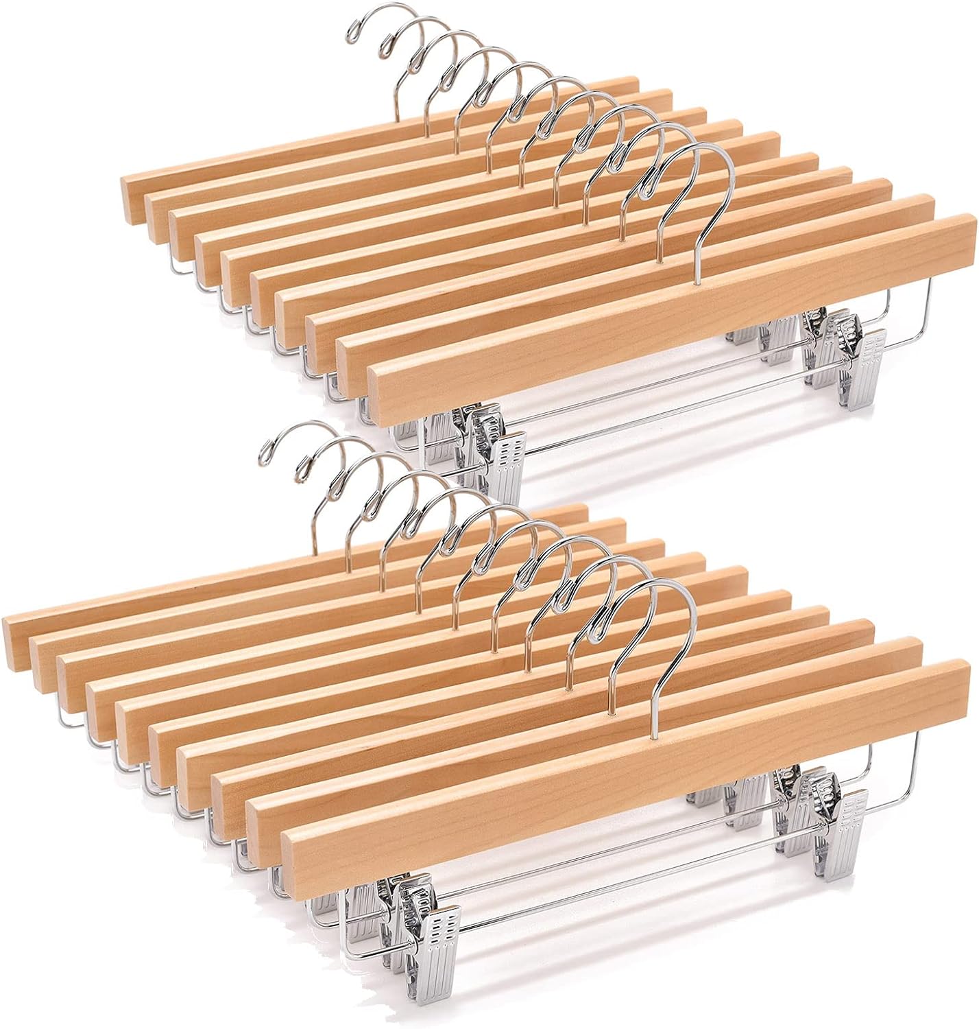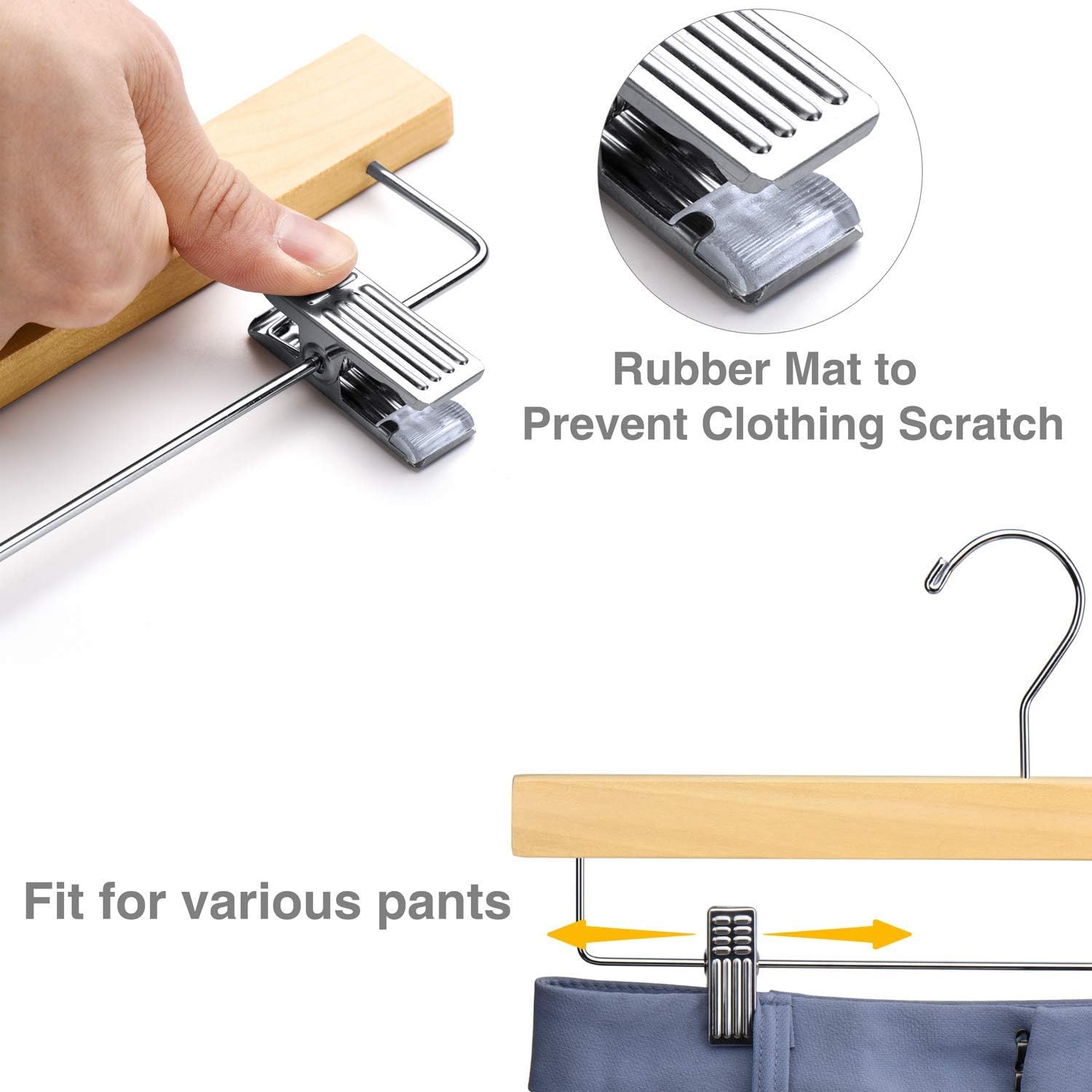 - ăADJUSTABLE CLIPSăMovable clip design, wooden pants hangers can be moved freely according to the different sizes clothes. hangers for pants with clips can be used for both adult clothes and childrenâs clothes.