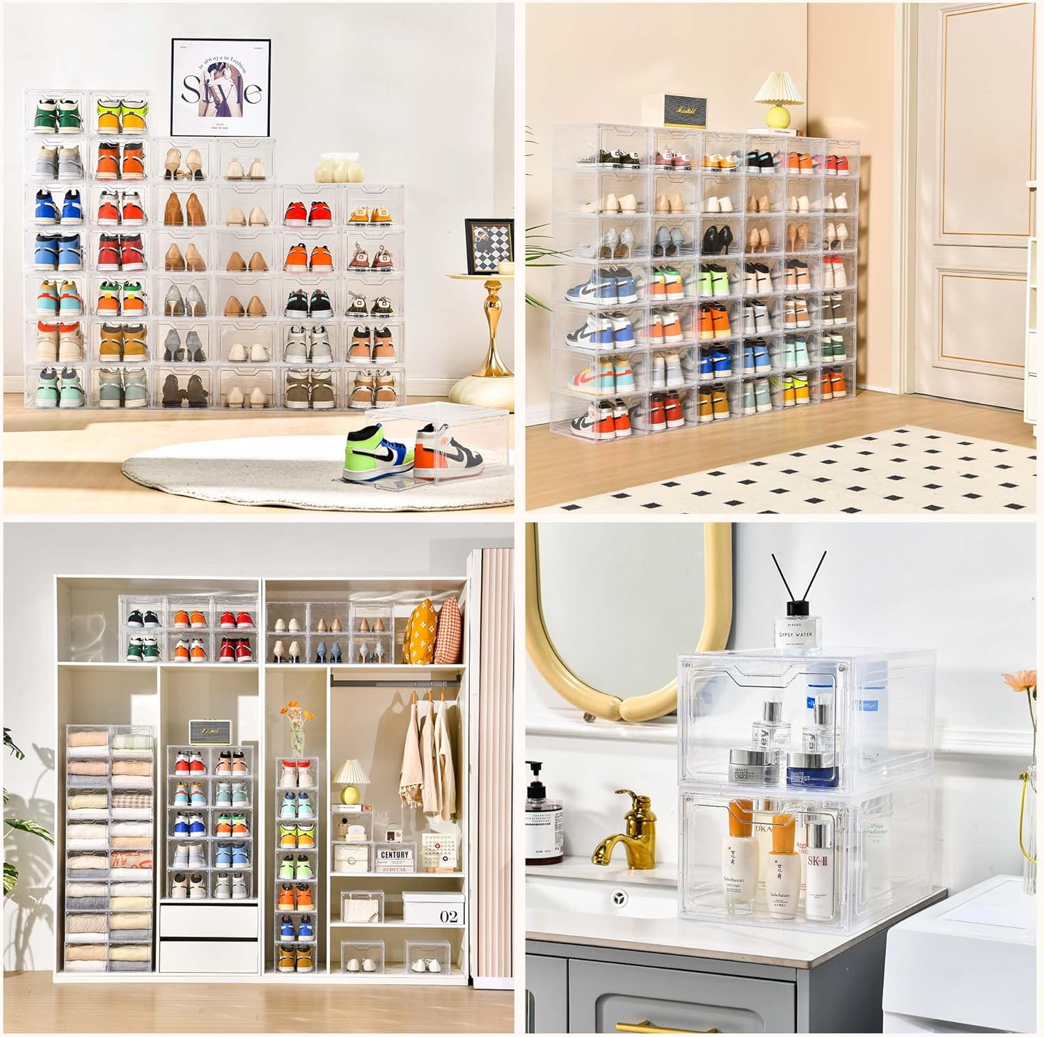 - â KEEP YOUR SHOES ORGANIZED - Stebopum clear shoe organizer lets you immediately see the pair stored inside. The drop-front opening means you don't have to unstack boxes to get the pair you want. It's an easy way to keep your shoe collection protected from dust while keeping them easy to access.