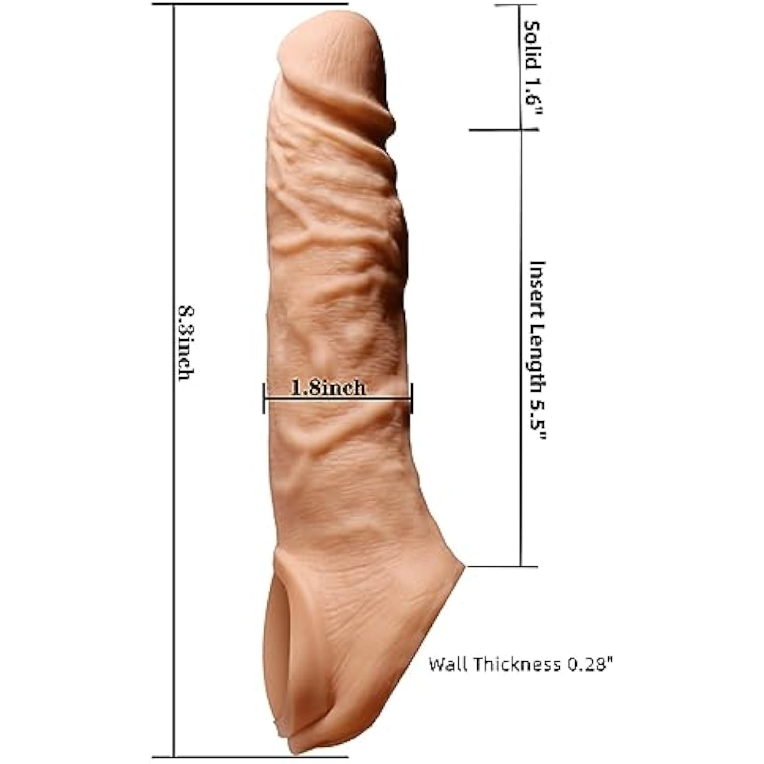 X-Large Penis Sleeve Enlarger, Cock Sleeve Extender Length Girth Extension Male Delay Ejaculation Sheath Adult Sex Toy For Men Women Couples