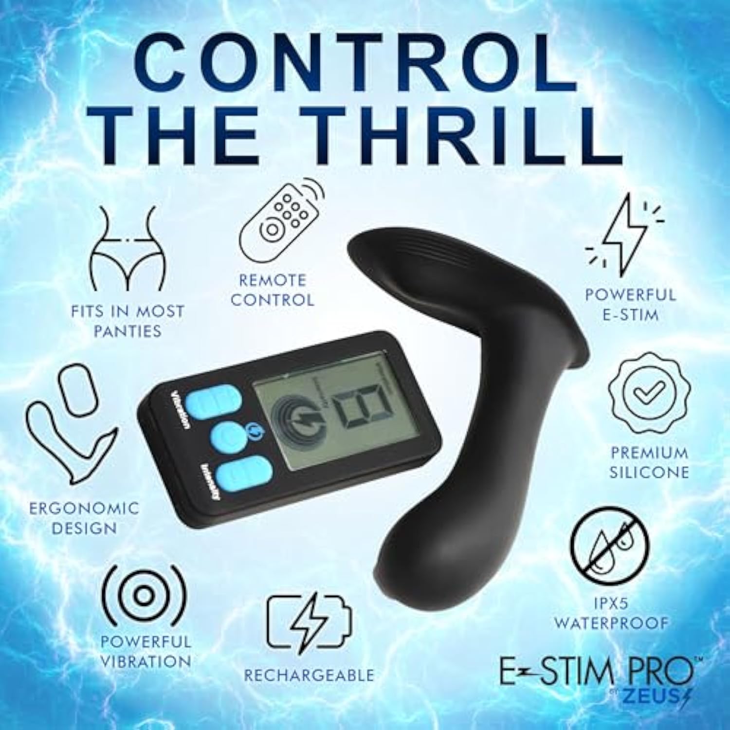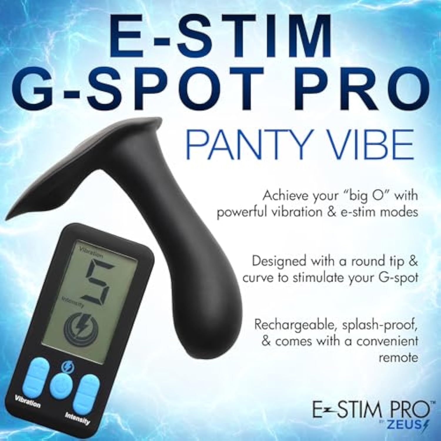 Zeus E-Stim Pro G-Spot Panty Vibe With Remote Control For Women & Couples. Targeted G-Spot Electro-Stimulation Gear With Remote Control Included. Splashproof Rechargeable Silicone. 3 Piece Set, Black